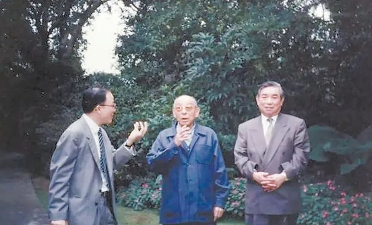 1990年,郭冠英(左)陪同唐德刚(右)访问张学良(中)。